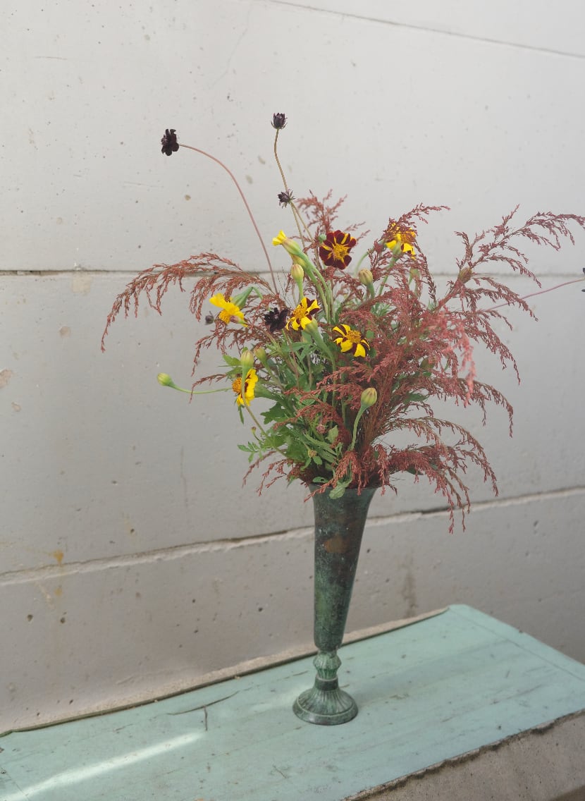 毎週金曜日市場で選んできた季節の花材を組み合わせて