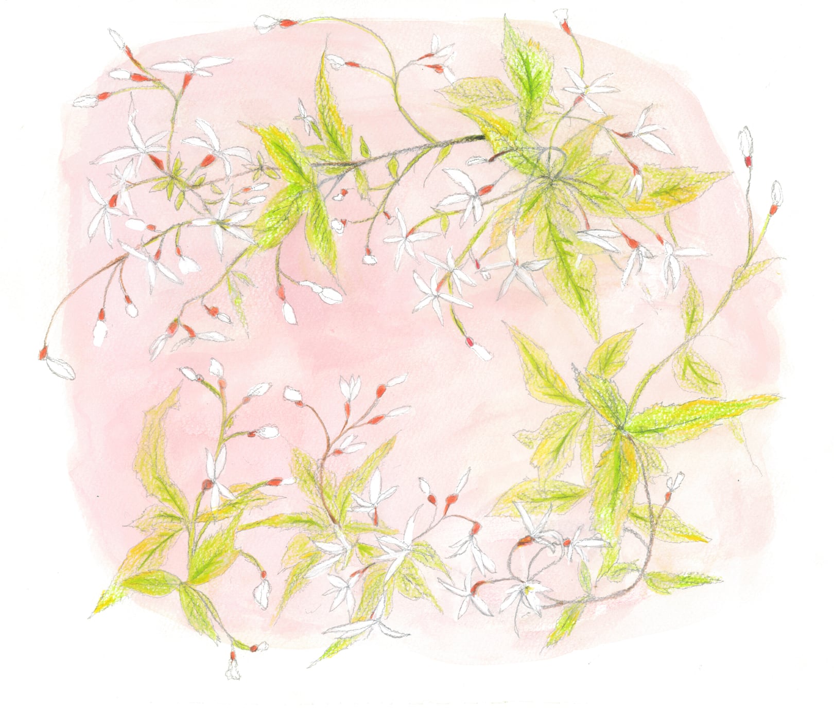 三葉下野(ミツバシモツケ)のイラストをバンダナにしました。